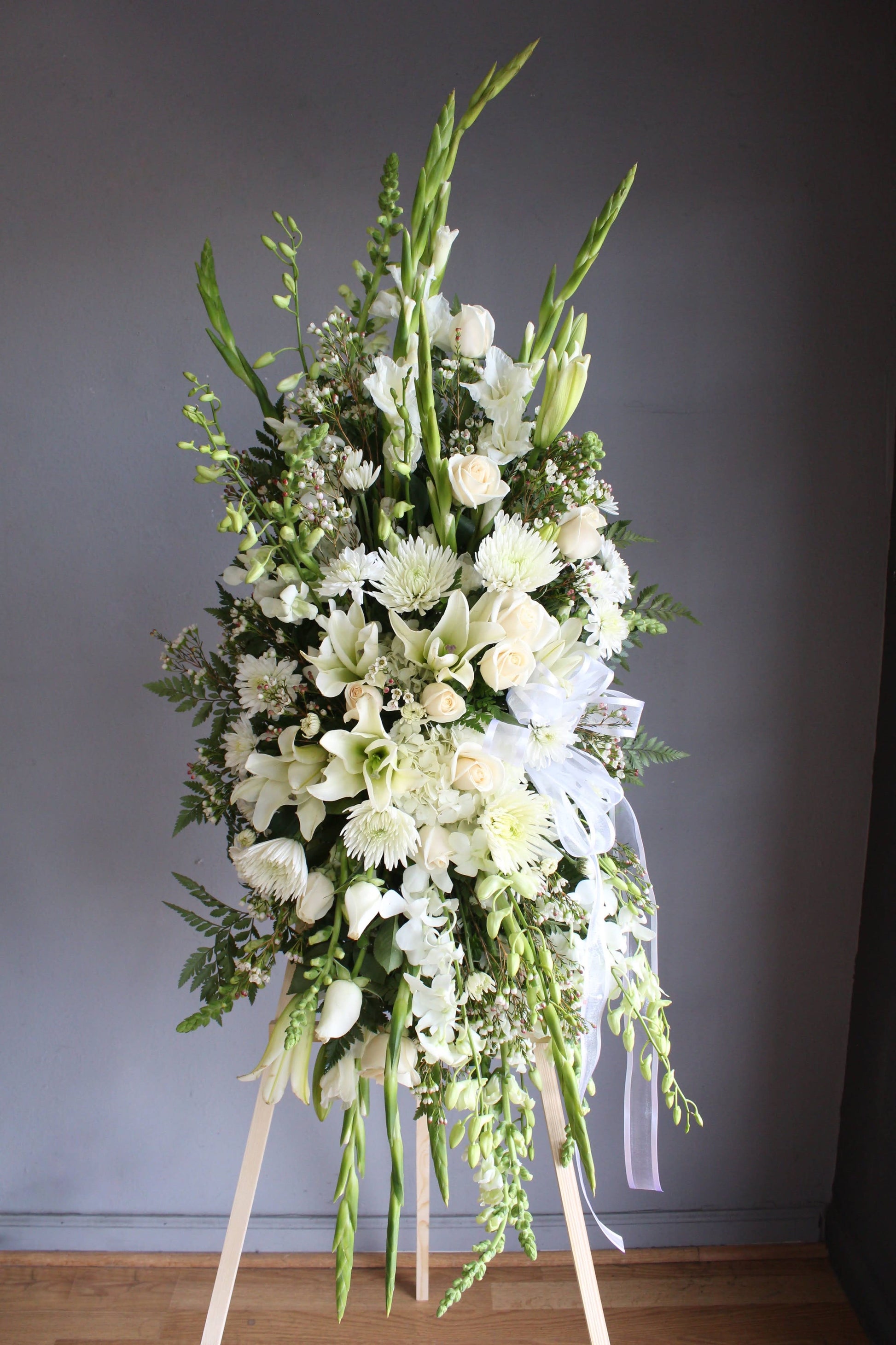 Answer 2: While our standing sprays are designed by skilled florists with a carefully selected mix of blooms for aesthetic harmony, you can reach out to our customer service for any specific requests or preferences you may have. We’re happy to help you find the perfect arrangement.